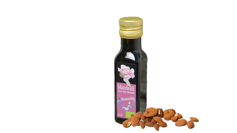 Wir rösten die Mandeln ganz leicht, nur weil Mandelöl die höheren Temperaturen auch verträgt. So entsteht ein zartes Öl. Als Umschreibung trifft hier eigentlich nur das Attribut "lecker". Es passt zu Süßspeisen, ist zum Backen geeignet und kann auch die Haut verwöhnen.